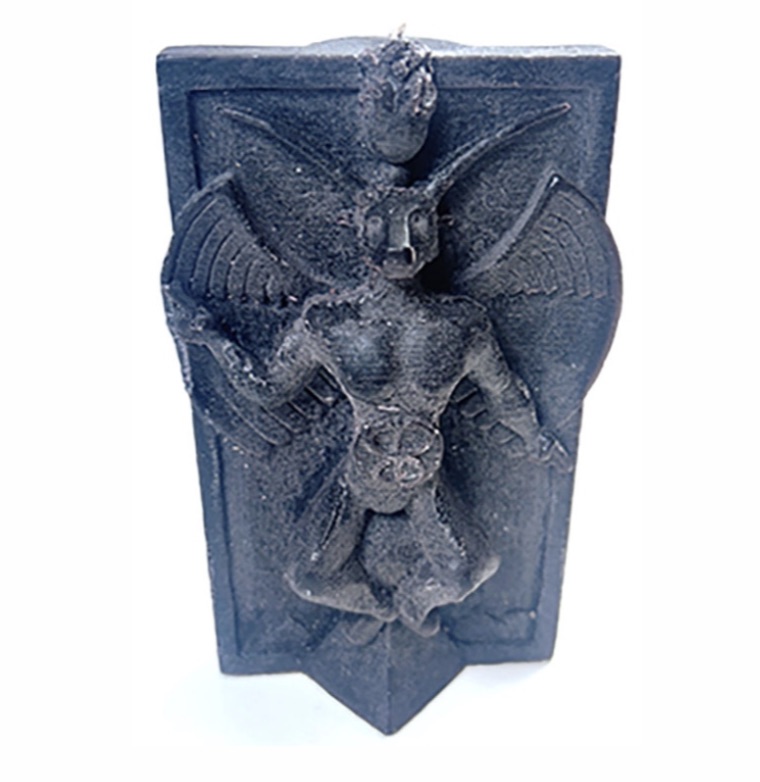 #1 – Light this Black Baphomet Candle during rituals of praise to Lucifer, Satan, or Baphomet, offering devotion to the dark divine.